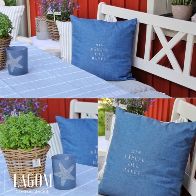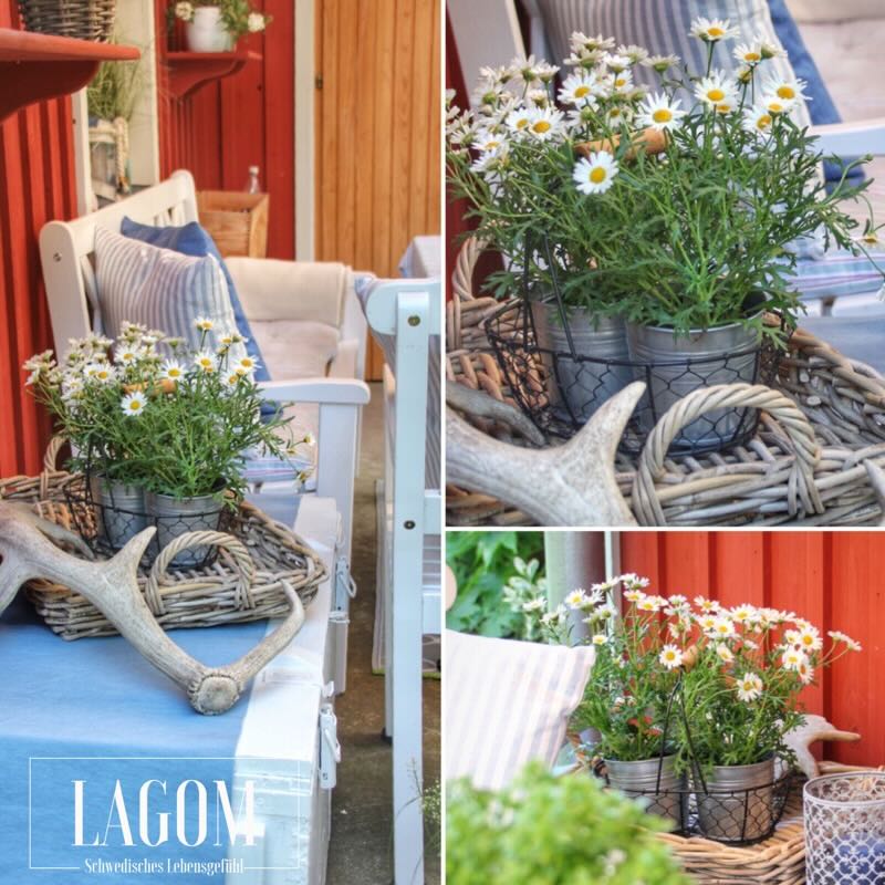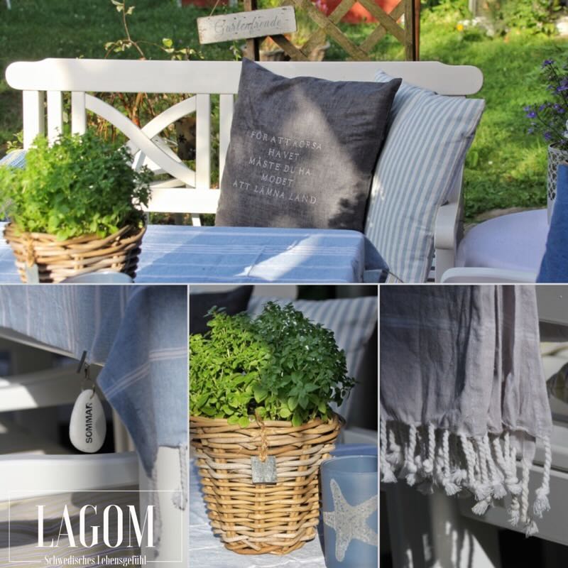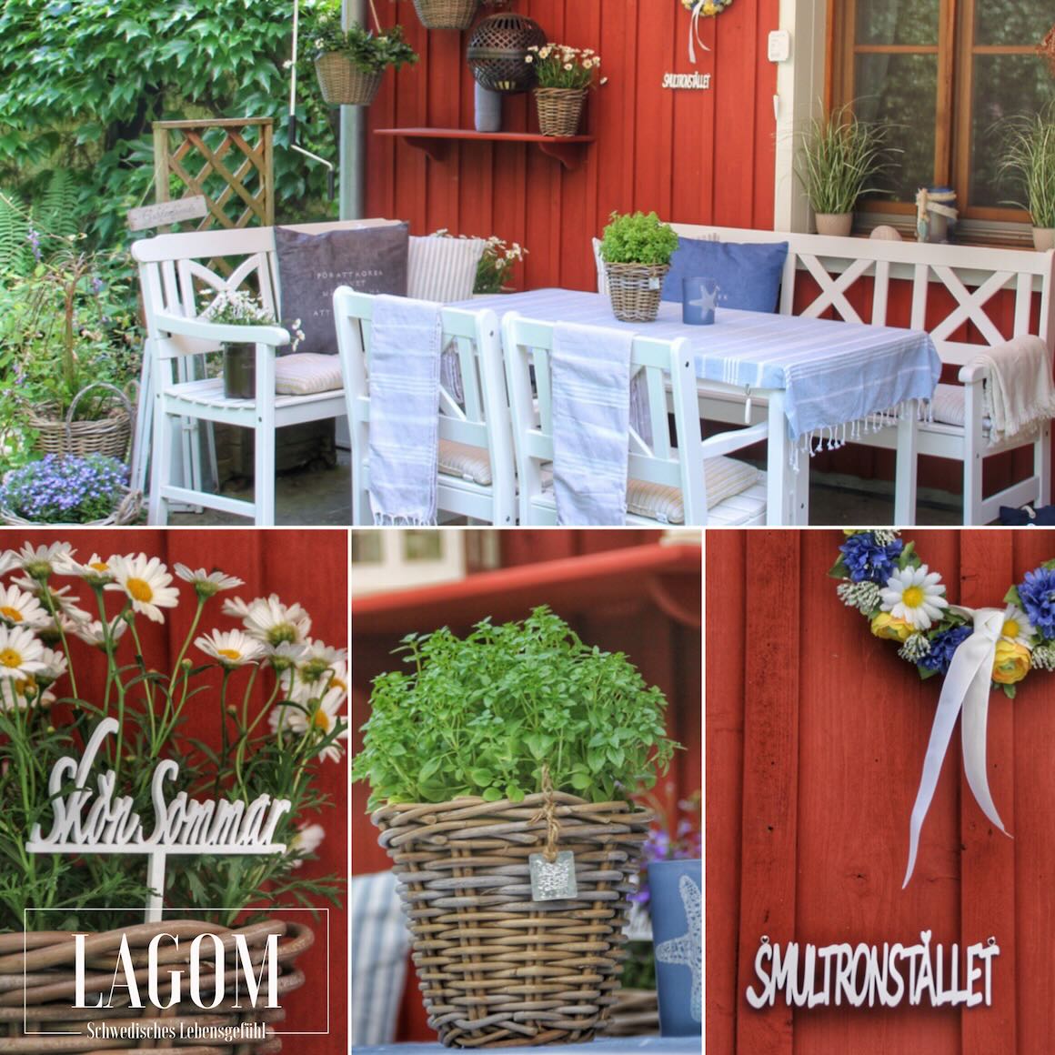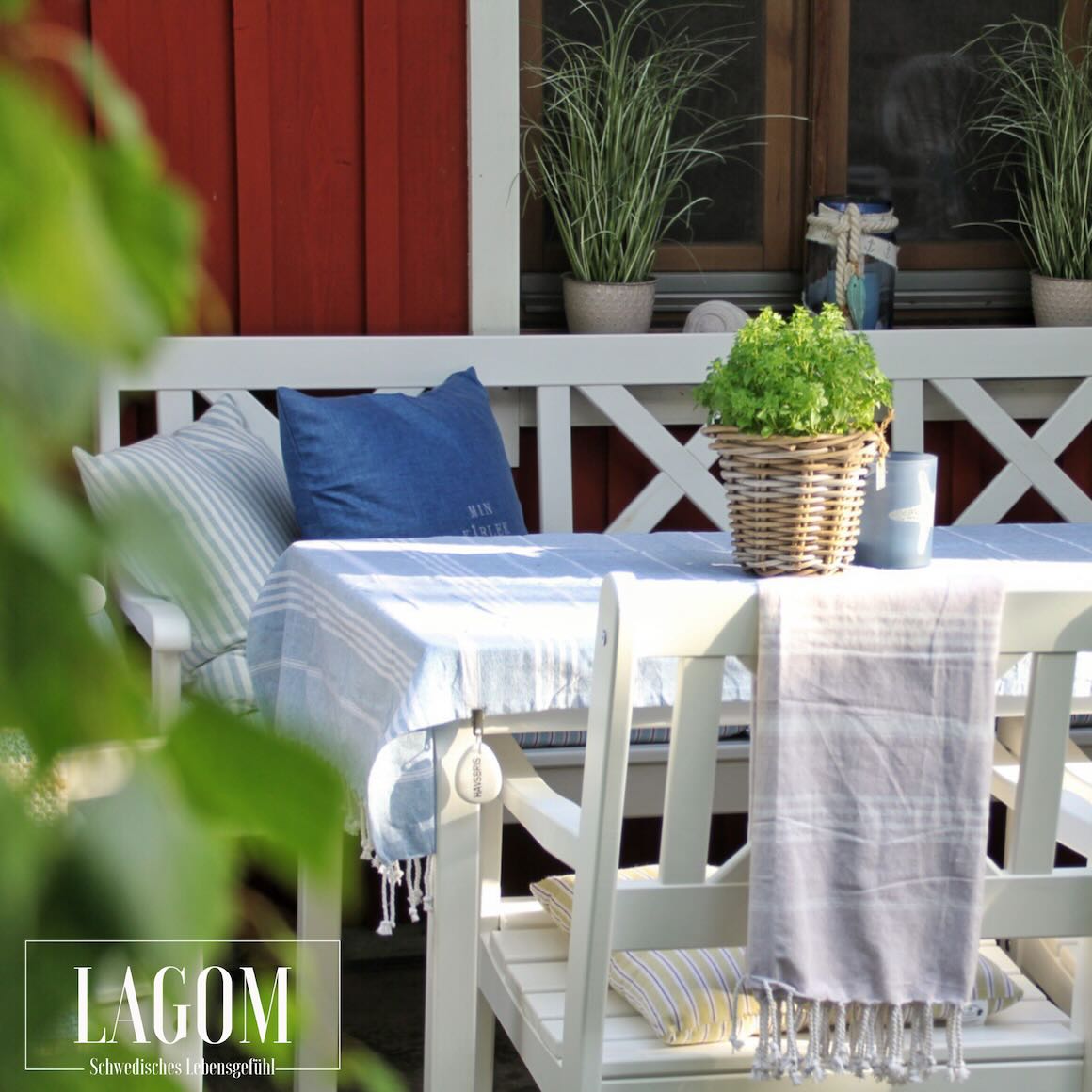 Ein paar gestreifte Sitzkissen und ein wenig sommerlich, maritime Deko – mehr braucht es nicht für sommerlich leichtes Schwedenfeeling auf der Terrasse.