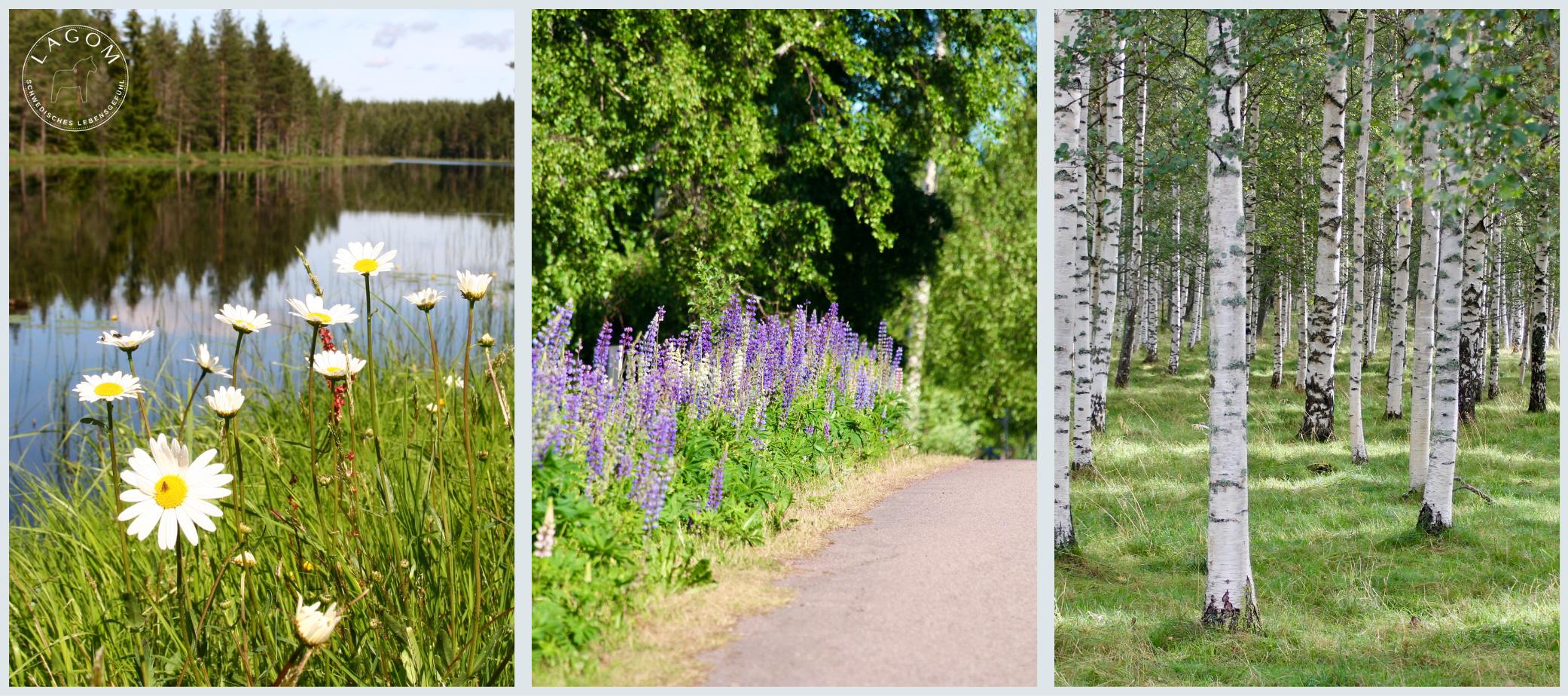 Es ist die Zeit in der die Wiesen voller Sommerblumen sind, Straßen- und Wegränder von unzähligen Lupinen gesäumt sind, die sich wie ein blaues Band durch die Landschaft ziehen und weiße Birkenstämme, durch das frische, grüne Laub ihrer herunterhängenden Äste leuchten.